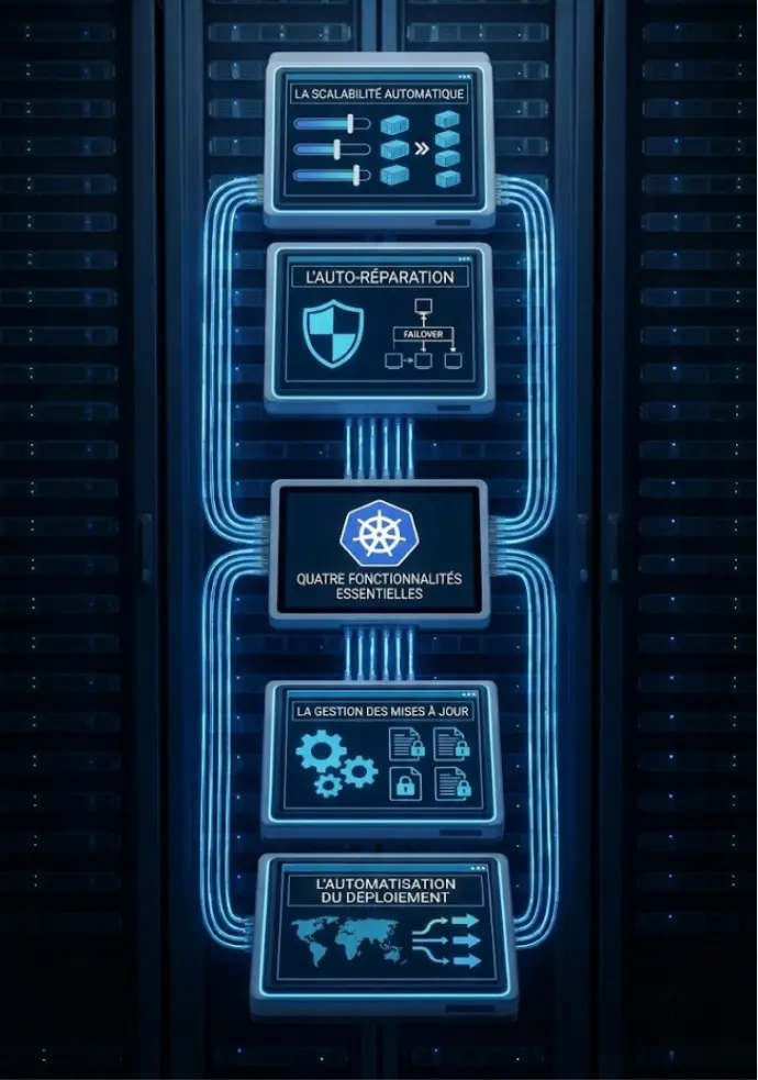 Kubernetes offre quatre capacités essentielles pour la gestion de conteneurs en production :