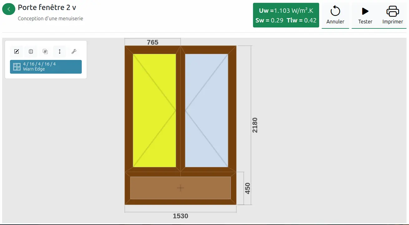- Éditer les notes de calculs nécessaires au marquage CE (Norme NF EN 14351-1).