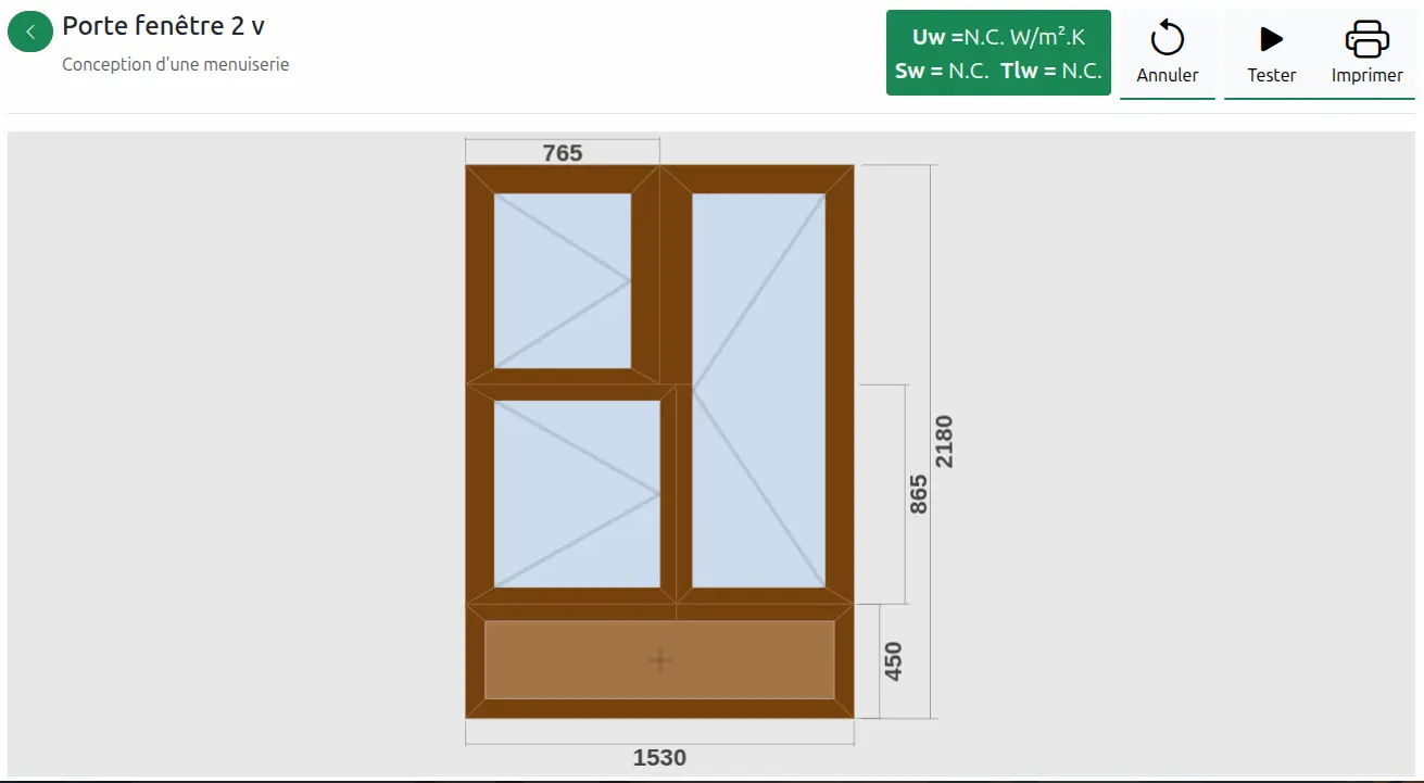 - Calculer les coefficients thermiques (Uw/Ud), les facteurs solaires (Sw) et la transmission lumineuse (Tlw) pour n’importe quels types de châssis simples, composés ou cintrés